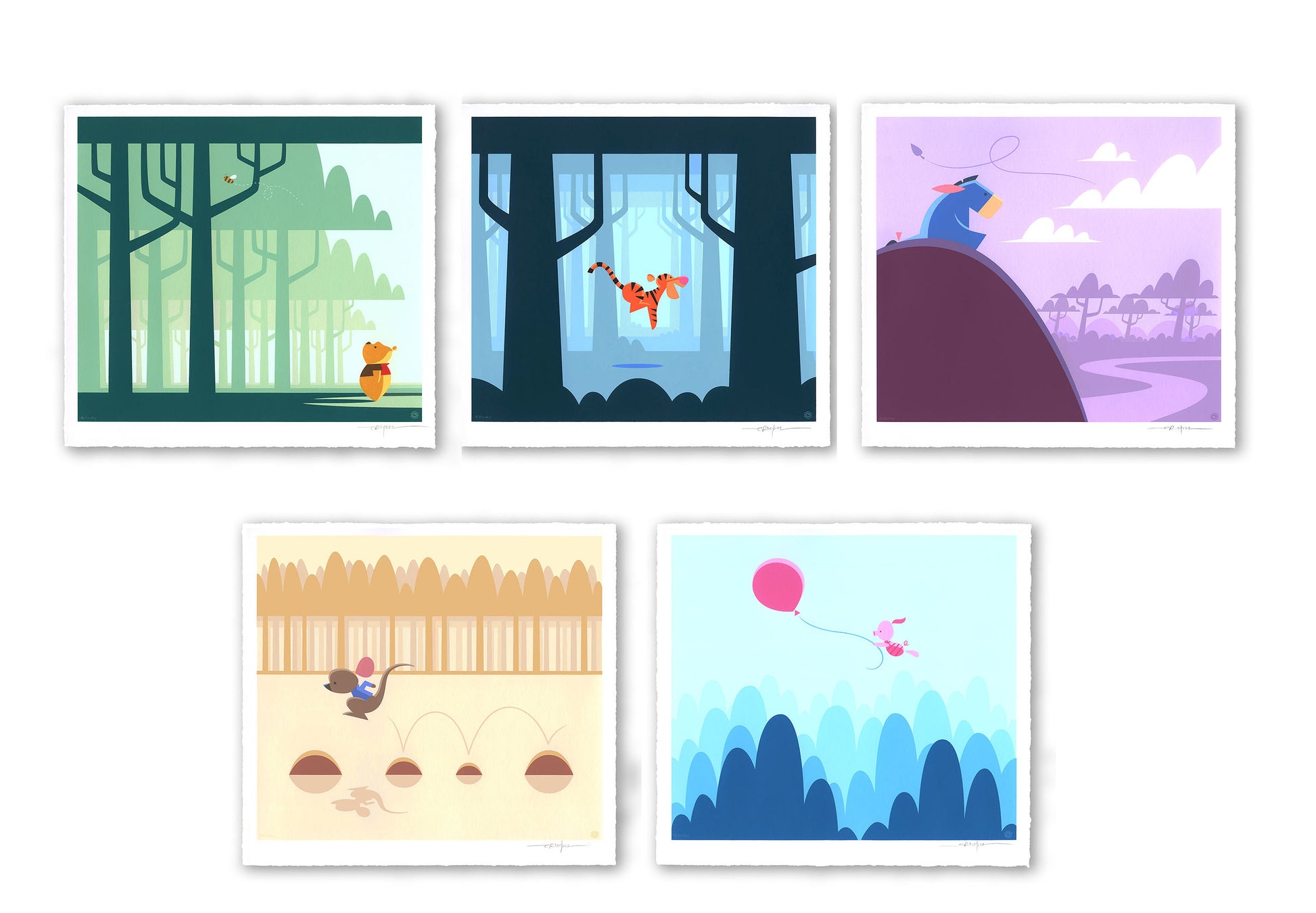 Eric Tan's Winnie the Pooh Limited Edition Print Set collecting all 5 screen prints. Prints will be matching-numbered sets, but will not ship with gold-printed envelope.