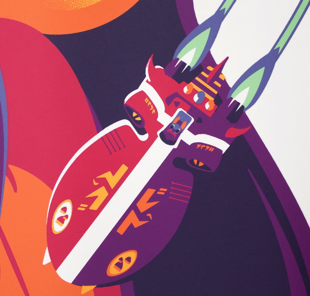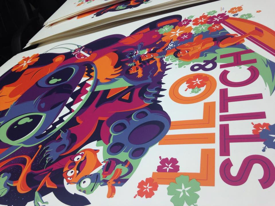 We’re extremely thrilled to work with Tom Whalen — an artist whose work we’ve admired for such a long time. Tom Whalen has created some of the most inspired screenprinted Disney and Pixar posters over the past years — and with everyone in the office being huge fans of Lilo & Stitch (marathon of the series on the Disney Channel anyone?)– we’re all extremely excited we get to debut Tom’s beautifully crafted take on this wonderful Disney film.